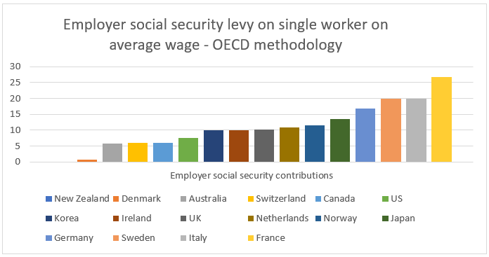 UK employers’ NICs are not out of line with competitor economies. Most (but not all countries) do tax work. It is clear that some other countries such as Australia, New Zealand, Denmark and the US do not tax work or tax it at much lower rates than the UK. Others, however, such as France and Germany tax work much more highly that us.